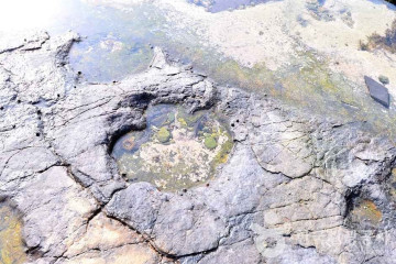 모래섬 사도에 내리면 가장 먼저 여행자들을 반겨주는 건 선착장 입구 양편에 서 있는 대형 공룡 조형물이다. 사도 입구에서부터 이곳이 공룡과 관련된 곳이라는 것을 알 수 있다. 섬 입구에 위치한 사도 관광센터에서는 공룡발자국 화석과 섬의 풍경을 담은 사진들이 관광객들을 맞이해 주고 잠깐에 휴식을 취할 수 있다. 사도와 중도 사이에 회백색의 부드러운 곡선을 그리는 양면해수욕장이 있는데 주민들은 이곳을 ‘섬마켓’이라고 부른다. 상에 오를 반찬이 걱정되는 날엔 빈 바구니를 들고 부담 없이 찾아와 몸을 건강하게 만드는 해조류를 한 아름 거둬 가는 곳이기도 하고 물이 맑고 수심이 얕아 해수욕을 즐기기에 안성맞춤이다.