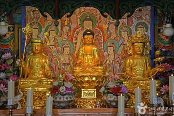 대웅전은 정면 5칸, 측면 2칸의 팔작지붕 건물로 1979년 중건되었다. 내부에 석가모니불 좌상을 모시며, 불상 뒤에는 후불탱화로 영산회상도가 걸려 있다. 불상은 조선시대 유물로 목조이며 높이 75cm, 어깨너비 45cm이다. 이 밖에 신중탱화와 나한을 그린 벽화 4점이 있다. 삼성각은 정면 3칸, 측면 2칸의 맞배지붕 건물로 1962년에 세워졌다. 축대 남쪽으로는 넓은 계곡이 있는데 이곳이 연지였다고 하며 키가 큰 갈대가 숲을 이루고 있는 습지대이다. 사역 내에서는 조선 시대의 기와류와 토기 편, 백자 편이 수습되었다. 가람은 오솔길을 따라 축대를 지나 청정 약수가 있는 수곽과 만나게 되며, 이곳을 지나 천연 암벽을 치석한 아치형의 석문을 통과하면 가람의 입구에 들어서게 된다. 가파른 언덕 위에 있어 오르기 힘들지만 가볼 만한 사찰이다.