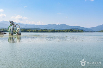 - 의암호 위에 떠 있는 섬 중도에 자리한 레고랜드 테마파크와 춘천 시내를 연결하는 대교다. 2019년 올해의 토목 구조상에서 금상을 수상한 건축물로, 다리 위 케이블을 연결한 원형 탑이 인상적이다. 다채로운 조명이 빛나는 야경 명소이자 시원하게 달리기 좋은 드라이브 명소로 사랑받고 있다. 춘천의 다양한 모습을 12가지 이미지로 구현한 화려한 분수쇼도 볼거리 중 하나로 매일 저녁 진행된다. 드라마 〈스물다섯 스물하나〉 에서 김태리와 남주혁이 무지개를 바라보