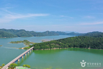 내촌호수마을은 대평면 내촌리의 진양호반에 자리한 마을이다. 내촌리는 진양호가 수몰되기 전에는 안말, 마당재, 족정, 들터 등의 마을로 구성된 전형적인 농촌 마을이었다. 하지만 남강댐이 들어서면서 인공 호수인 진양호에 수몰되고 새로이 마을이 조성되었다. 내촌호수마을은 체험 마을로 제일 먼저 손님을 맞이하는 곳은 웰컴센터다. 2층으로 이루어진 펜션형 숙소로, 통나무집이 포근한 잠자리를 제공해 준다. 옆에는 강원도에서나 볼 수 있는 너와집 지붕 형태의 정자도