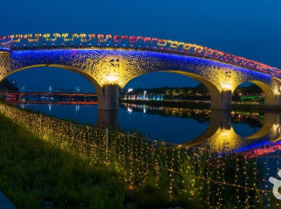 남원 요천수경 음악분수는 남원의 도심을 흐르는 요천 수변에 위치한 특별한 야간 명소로, 빛과 물, 음악이 어우러진 환상적인 공연을 선사한다. 최신 LED 조명과 음향 장비를 갖춘 분수는 클래식, 가요, K-POP 등 다양한 음악에 맞춰 춤추듯 물줄기를 뿜어내며, 낮에는 시원한 도심 속 휴식 공간으로, 밤에는 화려한 야경을 즐길 수 있는 문화 공간으로 변신한다. 광한루원과 춘향테마파크 등 남원의 대표 관광지와 쉽게 연계할 수 있어 여행 동선이 풍성하며 가족, 연인, 친구와 함께 남원의 밤을 즐기고 시원한 물줄기와 화려한 조명이 만들어내는 감동적인 순간을 경험할 수 있는 남원의 대표적인 야간 힐링 명소이다.
