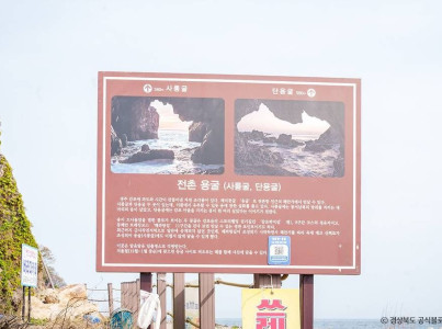 경주 감포에 파도와 시간이 만들어낸 자연 조각품인 전촌용굴은 해식동굴로 전촌항 인근의 해안가에서 만나볼 수 있다. 사룡굴과 단용굴 두 곳이 있으며 이름에서 유추할 수 있듯 용에 관한 설화를 품고 있다. 사룡굴에는 동서남북의 방위를 지키는 네 마리의 용이 살았고 단용굴에는 감포 마을을 지키는 용이 한 마리 살았다는 이야기가 전해진다. 용이 드나들었을 법한 통로가 보이는 두 동굴은 감포읍의 스토리텔링 걷기 길인 감포깍지길 제1, 8구간 코스의 경유지이며 동해안 트레킹코스 해파랑길 11구간을 걷다 보면 만날 수 있는 경관이기도 하다. 또한 최근까지 군사 작전 지역으로 일반인에게 공개되지 않던 곳인데 해파랑길이 조성되기 시작하면서 해안가를 따라 목재 데크 산책로가 조성되어 사룡굴에 어렵지 않게 닿을 수 있게 되었다.