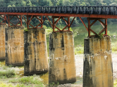 2004년 근대문화유산 등록문화재 제110호로 지정된 다리로 화천군 간동면에 있다. 화천댐이 준공되면서 1945년에 건설한 다리이다. 나무로 만든 상판에 검은색 타르를 칠해 ‘꺼먹다리’ 라는 이름이 붙었다. 화천수력발전소와 함께 당시의 산업을 엿볼 수 있는 시설물이며 건립 당시의 원형을 잘 간직하고 있어 근대 가구식 구조 교량사 연구에 중요한 자료로 평가받고 있다. 꺼먹다리는 난간도 없이 일부 침목이 훼손돼 수십 년간 방치되다 최근 2007년 문화재청의 승인을 받아 재정비되어 일반인에게 공개되었다. 한국전 당시 중동부전선을 연결시켜주는 중요한 교량이었기 때문에 전투도 치열했던 곳 이며, 일제강점기 때에는 소양강과 화천을 모노레일을 이용해 수송물자를 이동하기도 했다.