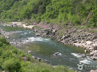 내린천은 소양강의 지류하천으로 홍천군 내면의 오대산과 계방산 계곡에서 발원하여 인제군 상남면과 기린면을 지나 인제읍 합강리에서 북한강의 제1지류인 소양강으로 합류한다. 내린천이라는 지명은 상류지역에 해당되는 홍천군 내면의 ‘내(內)’자와 하류 지역에 해당되는 인제군 기린면의 ‘린(麟)’자를 합쳐 이름을 붙인 것이다감입곡류하천땅이 솟아오르는 융기현상이나 기후변화로 해수면이 하강함에 따라 평지를 굽이쳐 흐르던 하천이 강 바닥을 깊이 파내려가 강폭에 비해 골짜기가 깊게 형성된 곡류하천을 지칭한다. 내린천은 북한강 유역의 하천들이 대부분 남서 방향으로 흐르는 것과 달리 북서 방향으로 흐르고 있으며 북한강 유역분지 내에서 골짜기의 평균 해발고도가 가장 높은 것이 특징이다. 따라서 골짜기가 매우 좁으며 물굽이의 굽어진 정도가 심한 전형적인 감입곡류하천을 이루고 있다. 특히 일대는 지난 1997년 정부의 내린천댐 건설 계획이 발표되자 주민·환경 단체의 반대로 댐건설이 백지화될 정도로 자연경관이 우수하고 청정한 지역이다. 주차는 수변공원에 할 수 있으니 참고해야 한다. (출처 : 강원평화지역 국가지질공원)