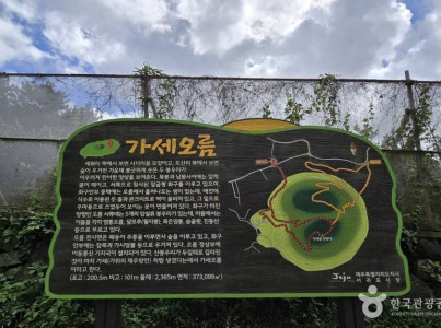 가세는 제주도 방언으로 가위라는 뜻을 의미한다. 표선면에 위치한 가세오름은 산봉우리가 두 갈래로 나누어진 말굽형의 오름이다. 또한 오름의 형태가 가위처럼 보인다 하여 가세오름으로 불린다. 가세 오름에는 5개의 암설류인 봉우리인 염통 오름, 족은 염통, 달 모루, 진동산, 숨골왓이 있다. 하지만 이 봉우리들은 덤불로 가로막고 있으며 탐방로도 있지 않아 발견하기는 어렵다. 가세 오름 초행길은 안내 표지판이 있으나 탐방로가 복잡하여 헤맬 수 있으니 주의를 요한다. 또한 가시덤불로 인해 상처를 입을 위험이 있어 긴 바지를 입고 가는 것이 좋다. 북쪽 봉우리에는 이동통신사 기지국이 있고 남쪽 봉우리 정상에는 초소가 있어 이동 위치를 쉽게 파악할 수 있다. 오름의 정상에 도착하여 경방 초소에 오르면 가시리의 오름 군락들을 조망할 수 있다. 입 장 료:무료 주소 : 제주특별자치도 서귀포시 표선면 녹산로 554 전화번호 : 제주시 관광정보센터 064-740-6000 우편번호 : 63622 쉬는날 : 연중무휴 이용시간 : ※ 일부 통제될 수 있으므로 방문 시 전화문의 요망 주차시설 : 가능 유모차 대여 여부 : 없음