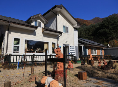 김명희 갤러리는 산촌생태마을 체험관 숲 속 학교 아래 계곡에 걸쳐 있는 작은 다리 하나를 건너면 바로 오른쪽에 위치하고 있다. 하얀색의 외관과 잔디밭이 멀리서도 눈에 띄는 조형스튜디오는 입구부터 눈을 즐겁게 한다. 마당 가득 작가의 테라코타 작품들이 전시되어 있다. 우리나라를 대표하는 흙공예작가 김명희 선생의 작업 공간이자 전시공간인 김명희 조형 스튜디오이다. 김명희 선생은 중국 민간 공예 특급 대사 ‘위청청’ 선생에게 사사한 한국 유일의 제자로 흙공예 특히 흙으로 인형을 만드는 분야에서는 국내외에서 명성이 자자하다.