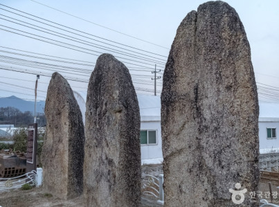 용담저수지와 용담생태습지원 인근에 위치한 사암리선돌은 선사시대 유적이다. 원삼면 사암리 안골 마을 입구 서쪽 밭 가장자리에 거대한 바위 3개가 나란히 서 있는데, 마치 반타원형의 돌을 세로로 절반 쪼개어 놓은 모습이다. 선돌은 신석기 시대부터 청동기 시대에 걸쳐 나타나는 일종의 토속 신앙 유적으로 조선시대까지도 마을의 수호신 격으로 신성시되었다. 사암리 일대는 선사시대 때부터 주거 부락이 있었을 것으로 짐작되며, 현재 이 지역에서는 서돌뱅이로 불리고 있는데 이는 선돌이 박혀 있는 곳이라는 뜻에서 연유했다고 한다. 돌의 크기는 남쪽의 1호는 높이 220cm, 너비 103cm, 두께 60cm이고 중간의 2호는 높이 210cm, 너비 101cm, 두께 35cm, 북쪽의 3호는 높이 222cm, 너비 102cm, 두께 35cm로 모두 정동향을 바라보고 있다. 본래 맞은편 밭(753-2번지) 가장자리에 있던 것을 2011~2012년 현재의 자리로 이동하였고 최초 발견 당시 넘어져 있던 것을 복원하는 과정에서 일률적으로 맞춘 것이라 원래 상태는 어떠했는지 확언하기 어렵다. 바위가 3개 이상 나란히 배치된 예는 드문 편으로 마을의 안녕을 기원하는 민간신앙의 숭배 대상물로 역사적, 문화적 가치가 높다.
