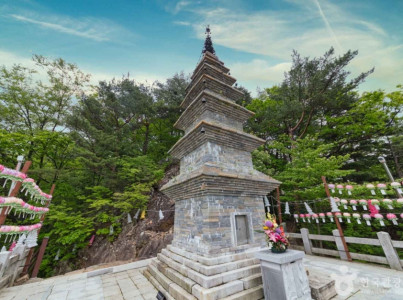 강원특별자치도 정선군 고한읍에 위치한 정암사는 삼국시대 자장율사가 창건한 고찰이다. 함백산 가는 길에 만날 수 있다. 일주문으로 들어서면 축대 위에 단단하게 선 육화정사와 목우당, 범종루가 차례로 나타난다. 그리고 열목어 서식지인 좁은 물길 위로 놓인 극락교를 건너면 적멸궁과 수마노탑이 위치한다. 유홍준 작가가 에서 극찬한 공간 배치다. 특히 적멸궁과 그 뒤편 산기슭에 우뚝 선 수마노탑을 마주하면 그 말을 실감할 수 있다. 정암사 적멸궁은 우리나라 5대 적멸보궁의 하나다. 자장율사가 수마노탑에 부처의 진신사리를 모신 후 이를 참배하려 세웠다. 그런 까닭에 법당 안에는 불상이 없다. 적멸궁과 더불어 수마노탑이 특별한 가치를 가지는 것도 그 때문이다. 수마노탑은 국보로 정선을 대표하는 불교 문화재다. 약 10분 정도 산길을 올라야 볼 수 있다. 짧은 수행의 구간이다. 약 9m 높이의 모전석탑으로 규모가 크지 않지만 균형 잡힌 형체가 빼어나다. 전탑 특유의 가지런함을 뽐낸다. 수마노탑 앞에서는 발아래 정암사 경내가 내려다보인다. 잠시 수행하듯 마음을 다스려 머물다 보면, 산중에 포근히 안긴 사찰 풍경이 마음에 평안을 선물한다.