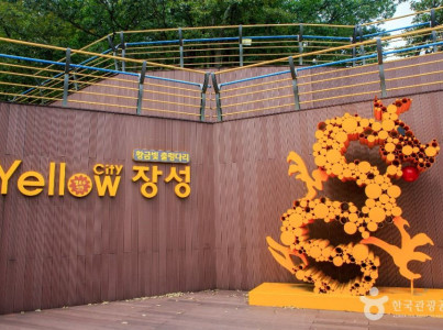 장성호 수변 길에 자리한 황금빛 출렁다리는 맑은 하늘과 녹음이 우거진 산, 그리고 장성호가 어우러진 풍경 속에 2020년 6월에 개통했다. 총길이 154m로 옐로 출렁다리와 길이는 같지만, 폭이 1.8m로 30㎝더 넓어 흔들림이 덜한 편이다. 흔들림이 덜해 줄을 잡지 않고도 건널 수 있다. 장성호 수변 길을 걷다 보면 옐로 출렁다리와 스카이 전망대를 지나 황금빛 출렁다리를 만난다. 다리를 건너다보면 무주탑 방식으로 중앙부가 수면과 좀 더 가까이 있어 자연을 만끽하는 짜릿함을 느낄 수 있다.