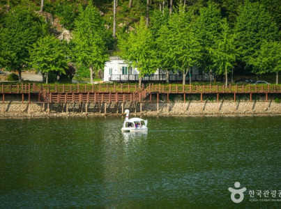 경남 거제시 동부면에 위치한 동부저수지는 거제지역 들판에 농업용수를 공급하고 있으며 초록빛이 가득한 논과 산이 한적한 스위스 마을에 온 듯한 착각을 불러일으키는 곳이다. 저수지 입구에는 ‘연인 나무 포토존’이 자리 잡고 있어 잔잔한 저수지를 배경으로 친구 또는 연인과 예쁜 추억을 남길 수 있다.
