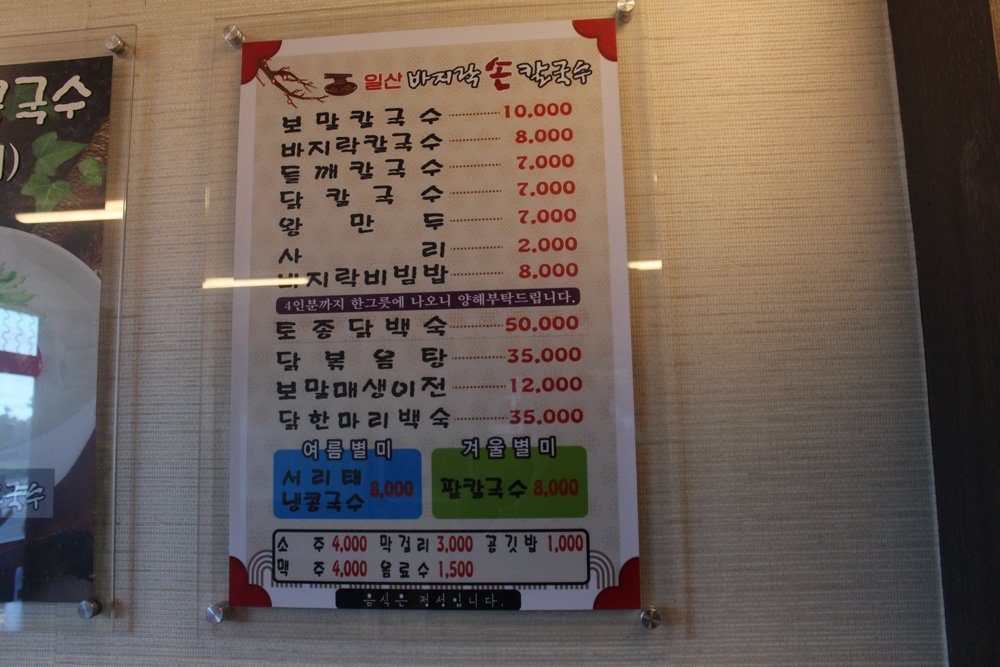 서귀포에 위치한 일산 바지락손칼국수의 내부 입니다.