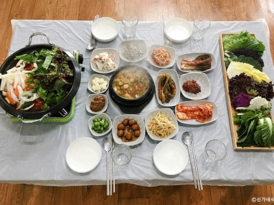 신가네식당은 강원도 태백시에 있는 쌈밥 전문 식당이다. 태백 현지인들이 많이 찾는 식당인데 태백산 등산객도 현지인 추천을 받아 많이 찾는다. 쌈밥을 주문하면 돼지고기 주물럭과 된장찌개, 쌈이 다양한 밑반찬과 함께 나오고 생선구이 정식을 주문하면 주물럭 대신에 생선구이가 나온다. 물닭갈비도 주문할 수 있다. 주물럭에는 밥을 추가해서 마지막으로 볶음밥을 만들어 먹을 수도 있다. 주차장은 매장과 조금 떨어진 곳에 넓은 전용 주차장이 있다.