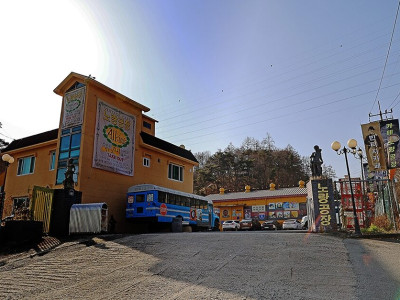 노랑공장은 횡성읍에서 횡성 댐으로 가는 길에 있다. 수입 물류창고를 카페로 개조한 곳으로 매우 독특하고 볼거리가 많다. 영국 이층버스와 미국 스쿨버스, 앤틱 트림과 마차가 서 있는 외부도 이색적이지만, 노란색으로 칠해진 오래된 공장문을 들어서면 앤틱샵이나 골동품박물관을 연상케 한다. 앤틱 전시 물품 사이사이 테이블이 있는데, 그 자체가 포토존 역할을 한다. 건물 뒤에는 산과 연결된 유럽풍의 야외 분수 정원도 있다.