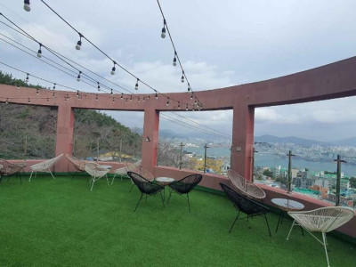 영도에 자리한 카페 385는 바다 뷰가 보이는 위치로 4층짜리 루프탑 카페이다. 나무 숲 사이로 흰색의 깔끔한 건물이 보이고 안으로 들어오는 순간 원두의 향에 설레고, 두 번째로는 베이커리 향에 취할 수 있는 곳이다. 영도할매빵으로 알려진 '부산 할머핀'은 달콤한 고구마와 꾸덕한 크림치즈가 어우러진 시그니처 메뉴로 유명하다. 영도 바다가 한눈에 들어오고 대형 카페로 따뜻함과 부드러운 추억을 공유할 수 있는 장소이다.