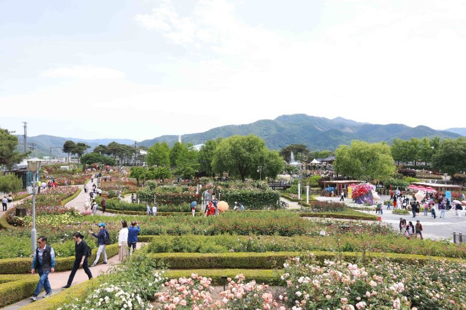 곡성군의 랜드마크인 에는 약 75,000㎡ 규모의 대형 장미정원이 조성되어 있으며, 이곳에는 1,004종에 달하는 유럽산 희귀 장미와 수만 본의 사계절 초화가 아름답게 식재되어 있다. 방문객들은 계절마다 변화하는 다채로운 꽃 경관을 감상하며 이색적이고 화려한 볼거리를 즐길 수 있다. 또한 중앙무대에서는 다양한 문화공연과 관광객 참여형 체험 프로그램이 상시 운영되어 현장에 활기를 더한다. 이러한 콘텐츠를 통해 관외 및 해외 관광객의 방문을 유도하고, 지역