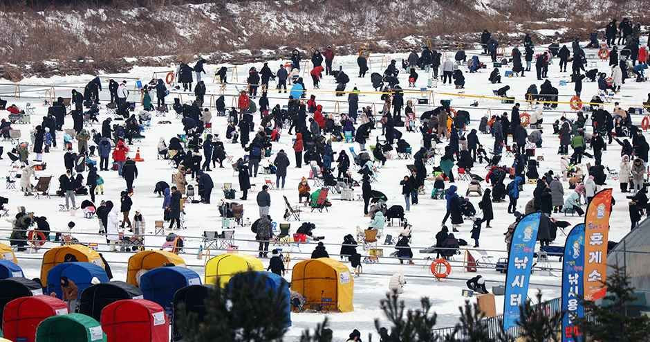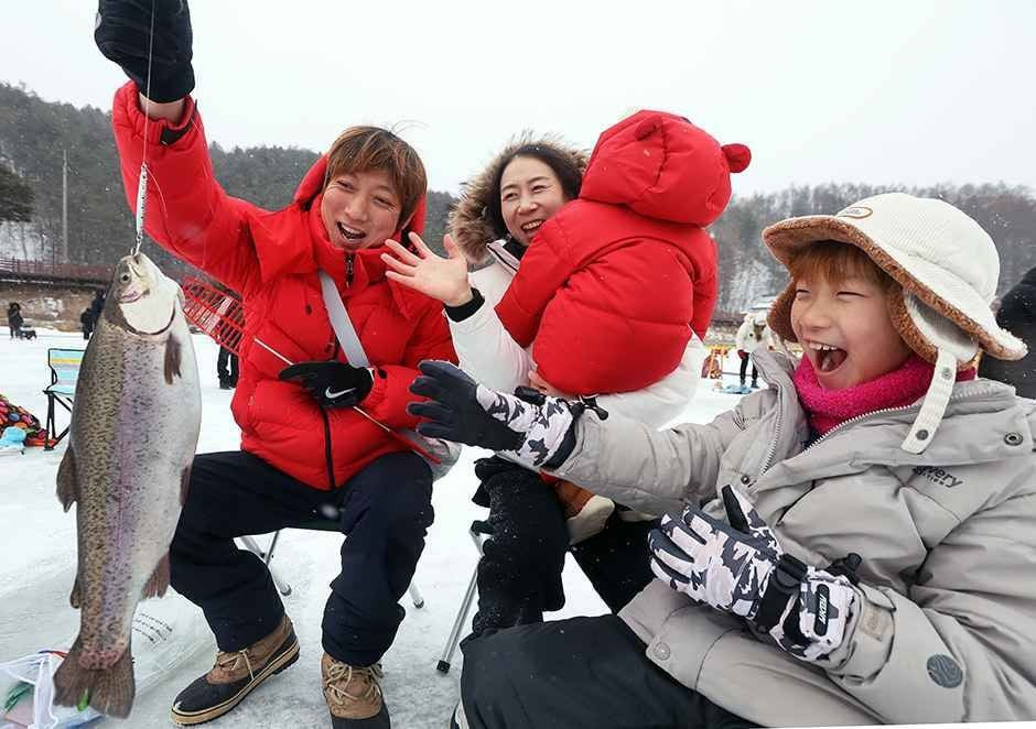 매년 12월말부터 1월말까지 평창송어축제가 한마당 펼쳐진다. 얼음 위에서 보