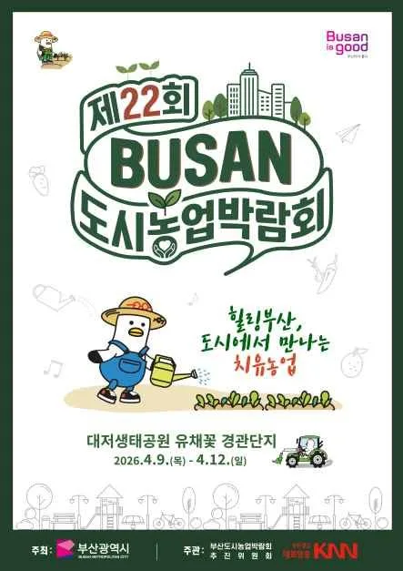 부산도시농업박람회는 부산농업 + 도시농업, 치유농업, 반려농업, 경관농업을 선보이는 플랫폼 박람회로 농업의 공익적 가치확산과 시민행복 증진시키기 위해 개최된다. 박람회 기간 동안 전시와 학술 행사 등 다양한 프로그램이 마련되어 있으며 2026년에는 4월 9일부터 12일까지 총 4일간 진행된다.