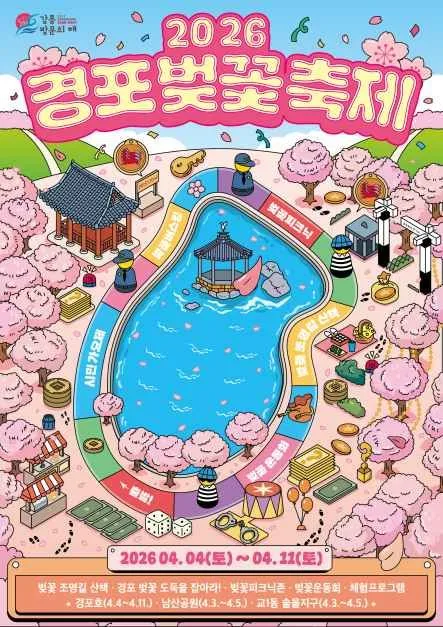 경포호를 따라 만발한 벚꽃길을 드라이브하고 걸으며 즐길 수 있는 최고의 벚꽃 명소이다. 낮에는 재미있는 공연과 즐길 거리가 마련되고, 저녁에는 경포 전역을 밝히는 벚꽃 조명이 장관이다. 벚꽃길을 따라 걷다보면 경포해변이 나오는 아름다운 풍경이 눈을 사로잡는다. 1993년부터 시작된 경포 벚꽃 축제에는 매년 25만 명 이상이 찾아 강릉의 봄을 함께 즐기고 있다. 주 행사장은 경포 습지광장에서 다양한 체험프로그램과 벚꽃 가요제, 벚꽃 운동회, 피크닉, 놀이존 등이 마련될 예정이다. 경포호수 곳곳에 숨은 벚꽃 도둑을 잡는 벚꽃 도둑을 잡아라! 이벤트도 마련되어 재밌는 요소와 함께 경포 구석구석을 즐길 수 있을 것이다. 경포 벚꽃 축제에서 2026년 봄의 추억을 벚꽃과 함께 남겨볼 수 있다.