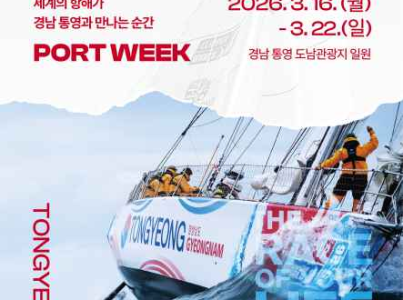 3월 16일 부터 일주일간 도남관광지 일대에서 ‘클리퍼 레이스 기항지 행사 포트위크(PORT WEEK)’를 개최한다. ‘클리퍼 세계일주 요트대회’는 무기항 요트로 세계 일주를 하는 글로벌 대회로, 국내 도시가 기항지로 선정된 것은 이번 통영이 처음이며, 세계적인 규모의 요트 대회가 대한민국을 방문하는 첫 사례이기도 하다. 이번 포트 위크 기간에는 화려한 출항식과 해상 퍼레이드를 비롯해 요트 투어, RC 요트 체험, 라이브 토크쇼 등 방문객들에게 특별한 경험을 선사할 다채로운 프로그램이 운영된다. 특히 3월 20일(금)부터 22일(일)까지 열리는 ‘포트테이블(PORT TABLE)’ 세션에서는 대한민국 대표 셰프인 강레오 셰프가 통영의 신선한 해산물을 활용해 선보이는 푸드 콜라보레이션과 세계 각국의 풍미를 즐길 수 있는 푸드 부스가 마련된다. 또한 야외 특설무대에서는 프린지 공연과 세계문화축제 공연이 펼쳐져 축제의 흥을 더할 예정이다. 이외에도 3월 21일(토)에는 2026 대한민국 문화도시 뮤직웨이브 기획공연 더 재즈 앰버서더스 오케스트라 with 말로, ‘국제해양영화제 단편 상영회’, 클리퍼 레이스 축하 불꽃쇼 등 감성적인 문화 프로그램이 준비되어 있어, 통영을 찾은 선수단과 관광객, 그리고 지역 시민들 모두 즐길 수 있는 축제의 장이 될 것이다.