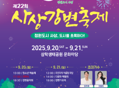 부산 사상구 대표 축제인 사상강변축제는 도심 속 천혜의 자연을 배경으로 누구나 즐길 수 있는 로컬 문화예술 콘텐츠로 구민을 찾아간다. 올해 제22회를 맞는 사상강변축제의 슬로건은 “정원도시 사상, 도시를 초록하다!”로, 생태환경도시 사상구의 역량과 미래를 널리 알린다. 청년밴드 프로젝트 , 사상강변음악회, 사상강변가요제, 불꽃놀이, 사상 청소년 예술제, 사상 다문화 박람회 등 다양한 프로그램과 자연과 사람 문화가 공생하는 친환경 축제를 모티브로 ESG 힐링쉼터와 먹거리부스엔 키오스크 운영 및 다회용기를 제공한다. 축제장소인 삼락생태공원은 부산 제1호 지방정원으로 지정되었다.