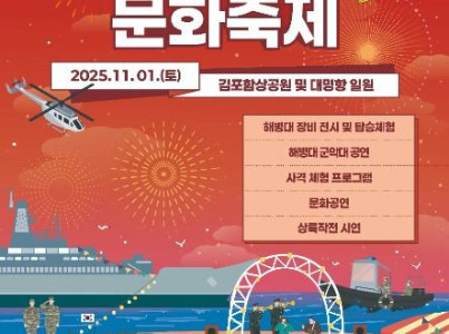 김포 해병대 문화축제는 해병대의 강인한 정신과 전통을 기념하는 행사이다. 해병 장비 전시 및 체험, 청룡부대 출정식, 의장대·군악대 합동공연, 문화공연, 체험부스, 군대 먹거리 등이 마련되며, 시민들이 해병대 문화를 직접 체험하고 소통할 수 있다.