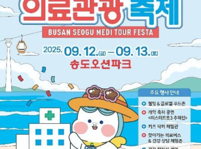 제4회 부산 서구 의료관광축제가 오는 9월 11일과 12일 이틀간 송도오션파크 일원에서 서구, 부산대학교병원·동아대학교병원·고신대학교복음병원·삼육부산병원 공동 주관으로 개최된다. 개막식은 12일 오후 3시에 있을 예정이다. 이 축제는 부·울·경 최초 ‘의료관광특구’인 서구를 널리 알리는 것은 물론, '비즈니스 상담·바이어 팸투어' 등을 통해 외국인환자 유치 활성화 기반을 마련하고, 주민·관광객들에게 올바른 건강 정보와 다양한 의료 체험 기회를 제공하기 위한 것이다. 축제 현장에서는 ‘건강챌린지 게임’, ‘심폐소생술 강연’, ‘명상 요가’, ‘바른걸음 원데이 클래스’ 등 남녀노소 누구나 참여할 수 있는 프로그램이 운영된다. 올해는 특히 관광객 참여를 확대하기 위해 ‘웰빙&글로벌 푸드존’을 새로 조성하고, ‘찾아가는 의료버스’와 ‘플리마켓’ 존을 신설했다. 또한 ‘어린이 보건 뮤지컬’, ‘키즈 닥터 체험관’, ‘레이싱 에어바운서’ 등 아동 맞춤형 프로그램을 강화해 가족 단위 관람객의 호응을 이끌 계획이다. 의료와 문화가 어우러진 무대도 준비된다. 대학병원 명의와 함께하는 ‘건강 토크 콘서트’를 비롯해 마술·벌룬·저글링쇼, 팝페라·색소폰 공연, ‘미스터트롯3 추혁진'의 개막 축하 공연은 관객들에게 힐링의 시간을 선사할 예정이다. 건강 관련 상담과 전시·홍보·체험행사는 60여 개 부스에서 진행되는데, 공동 주관 병원과 보건소, 한의사회 등이 참여해 골밀도 검사, 폐활량 검사, 혈압·혈당 측정, 한의학 약침 진료, 올바른 약 복용 상담 등 다양한 건강 서비스와 정보를 제공한다. 이와 함께 서구와 부산테크노파크는 ‘헬스케어 산업 홍보관’을 운영해 지역 유망 의료기술 업체들의 제품 전시와 체험 기회를 마련, 의료·산업·관광이 결합된 서구만의 특화된 매력을 선보인다.