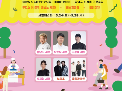 2025 강남 디자인위크 G-KFOOD FESTIVAL은 예술, 문화, 트렌드가 공존하며 '음식'을 매개로 일상 속 즐거움을 나누는 디자인위크 페스티벌 이다. 가로수길을 중심으로 펼쳐지는 이번 페스티벌은 스타셰프 푸드쇼 & 강연, 푸드 & 플리마켓, 버스킹 공연, 세일페스타 등 다채로운 프로그램을 통해 푸드 기반 라이프스타일 콘텐츠를 제공하며 가로수길이 지향하는 도시형 축제의 방향성을 제시한다.