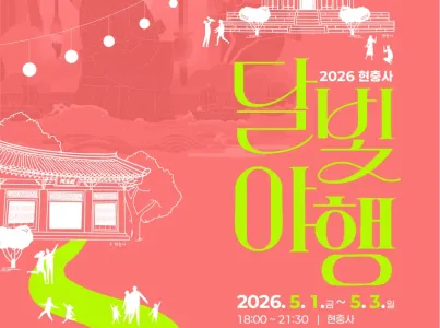현충사 달빛야행은 성웅 이순신 장군의 정신이 깃든 현충사를 배경으로 펼쳐지는 야간 문화축제이다. 역사적 공간이 지닌 의미와 현대적 감각의 빛 연출이 어우러진 특별한 프로그램이다. 올해는 기존의 가을밤이 아닌 봄밤을 배경으로 진행되어, 한층 부드럽고 생동감 있는 계절의 분위기 속에서 새로운 야간 콘텐츠를 선보인다. 빛으로 연출된 아름다운 야간 경관을 따라 펼쳐지는 공연·전시·체험 프로그램은 낮과는 또 다른 현충사의 매력을 깊이 있게 전달하며, 방문객들에게 색다른 문화 향유의 기회를 제공한다. 또한 다양한 체험 프로그램을 통해 남녀노소 누구나 참여할 수 있는 열린 축제의 장을 마련하고, 역사와 문화, 그리고 빛이 조화를 이루는 의미 있는 밤의 시간을 선사하고자 한다.