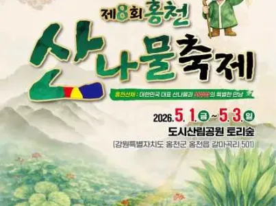 강원도 홍천군은 전국 시·군 중 가장 넓은 면적을 자랑하며, 전체 국토의 85%가 울창한 산림으로 둘러싸인 천혜의 자연 저장고이다. 특히 동쪽으로 갈수록 해발고도가 높아지는 독특한 지리적 특성은 청정 고산 산나물이 자생하기에 최적의 조건을 선사한다. 이 깊은 산세가 빚어낸 생명력을 한자리에 모았습니다. 올해 홍천에서는 청정 숲의 정기를 머금은 산나물과 기력 보강의 상징인 산양삼이 만나는 특별한 축제의 장이 마련되어있다. 축제 현장에서는 향긋하고 싱그러운 명이나물부터 참두릅, 엄나무순까지, 홍천의 고산 지대가 길러낸 다채로운 산나물을 한눈에 담을 수 있다. 또한, 환절기 지친 몸의 기력을 보해 줄 귀한 산양삼으로 건강까지 세심하게 챙길 수 있다. 현장에서 구매한 싱싱한 산나물과 산양삼을 홍천의 명품 돼지고기인 ‘홍천한돈’과 함께 즉석에서 구워 즐길 수 있는 특별 식당이 운영된다. 오는 5월 1일부터 3일까지, 도시산림공원 토리숲에서 눈으로 즐기고 맛으로 기억하는 가장 건강한 순간을 만끽할 수 있다.