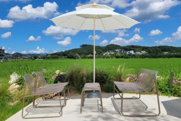 논사이하우스는 논밭 사이에 위치한 대형카페이다. 카페 건물 전체가 통창으로 이뤄져 있어서 주변 밭의 전경이 한눈에 보이고, 밭 산책로가 이뤄져 있어서 자연친화적인 카페이다. 시그니처 메뉴로 사계절에 걸맞은 음료를 판매하고 있어서 사계절 내내 즐기기에도 좋은 카페이다.