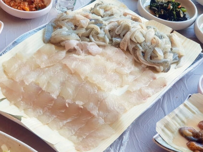 여수 수산물특화시장 2층에 있는 구이랑회는 넓은 실내에 청결하고 쾌적한 환경을 지닌 식당이다. 20년간 바다에 나가 고기잡이하며 기른 주인의 안목으로 가장 맛있는 생선을 최적의 방법으로 제공하는 이 집의 대표 메뉴인 모듬생선구이 정식이다. 손맛이 느껴지는 밑반찬, 찌개에 삼치, 고등어, 제철 생선 등 다양한 구성의 생선구이가 제공되며, 바삭한 껍데기와 통통한 속살로 밥도둑이 따로 없다. 생선구이의 도톰한 살을 간장에 찍어 먹으면 비린내 없이 고소한 맛에 입맛이 살아난다. 그 외에도 전복 영양솥밥, 신선한 서대회와 아삭한 채소를 함께 무쳐 내는 서대 회무침, 전복 버터구이 등을 판매하며 1층 수산물 시장에서 구입한 회도 상차림비만 내면 앉아서 먹을 수 있다. ※ 반려동물 동반불가