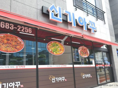 여수 현지인들이 즐겨 찾는 아귀찜 전문점 신기아꾸는 4인 테이블, 8인 테이블 그리고 안쪽 벽 쪽 자리도 있어 여럿이 함께 와도 식사하기 편한 곳이다. 아귀는 남해안에서 많이 잡히는데 현지인들의 억양이 세서 아꾸라고 부르기 때문에 '신기아꾸'가 되었다고 한다. 신기동에서 30년 넘은 아주 오래된 식당으로 최근에는 입식으로 앉아서 먹을 수 있게 인테리어 공사를 해서 신발을 벗지 않고도 그대로 편하게 앉아서 먹을 수 있다. 깔끔하고 깨끗한 실내에 메뉴는 아귀찜, 아귀탕, 서대회, 대창 찜으로 단출하다. 밑반찬으로는 노각무침, 고사리, 멸치볶음, 계란찜 등이 나온다. 주차장은 따로 없어 근처 골목이나 뒤쪽 주택가에 주차해야 한다. 단, 도로변은 주차단속 구역이니 주의해야 한다. 주변에 신기공원, 시모공원 등이 있어 연계 관광하기 수월하다.