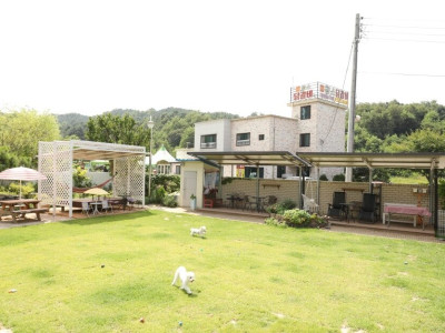 170여평 잔디마당, 40여평실내.실내복층과 온돌되는 좌식있는 반려견 카페 퍼피쿵입니다.떡볶이.토스트.핫도그등 메뉴있습니다.
