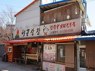 청계산 근처에 있는 옛골산장은 장작불에 초벌 한 오겹살이 대표메뉴이다. 고기류 외에 전골류, 식사류, 안주류로 구분된 다양한 메뉴가 있다. 본관과 별관으로 구분되어 있고, 200석 정도 되는 단체 연회석이 있고, 대형주차장도 마련되어 있다. 또한 인조 잔디로 된 족구장 코트가 3개 있고, 빔프로젝트와 간단한 무대도 있어 단체 모임 및 각종 야유회 행사를 하기에 적합하다. 미리 요청하면 15인승 차량 운송 서비스도 제공받을 수 있다. 곁들임 반찬으로 나오는 유기농 채소는 991㎡(300여 평)의 텃밭에서 직접 재배한 것이다. 매년 12월에는 직접 재배한 배추로 2천 포기의 김장을 하고 1년 뒤에 손님상에 올린다.