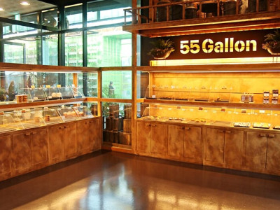 55갤런은 경기도 김포시 양촌읍 누산리에 있는 대형 디저트 카페다. 카페 입구에는 55갤런 드럼통과 다양한 꽃으로 예쁜 포토존을 꾸며 놓았고 내부엔 에런 잭슨이란 작가가 만든 업사이클링 아이언 아트웍스가 장식되어 있다. 창밖의 전원 풍경과 다양한 모습의 작품이 나무들과 함께 어우러져 이색적인 분위기를 자아낸다. 다양한 브런치와 샐러드, 베이커리가 있고 와인도 주문이 가능하다.커피나 음료만 즐길 수 있고 반려동물 용품을 팔고 있어 작품을 감상하며 힐링하기 좋은 공간이다. ※ 반려동물 동반 가능 (단, 야외테이블 이용과 목줄 착용 시)