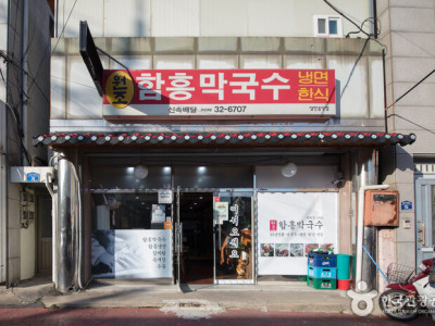 [중소벤처기업부 2018년도 '백년가게'로 선정]1951년부터 시작된 오랜 역사를 가진 함흥냉면 명가다. 속초에 처음 함흥냉면을 소개한 곳으로 TV 음식 프로그램에도 여러 번 방영된 대표적인 맛집이다. 함흥냉면은 원래 감자녹말로 만든 국수에 신선한 가자미회를 얹어 매콤하게 비벼먹는 함경도 지방의 향토 음식이다. 함흥냉면옥은 가자미회 대신 동해안 특산물인 명태회 고명을 얹는데 속초의 명물 먹거리인 명태회냉면을 처음 개발한 곳이 바로 이곳이다. 함흥냉면옥은 속초식 함흥냉면의 원조로 인정받아 2018년 중소벤처기업부가 선정한 백년가게에 선정됐다. 오래 우려낸 사골 육수에 직접 뽑은 면과 새콤하게 무친 명태회는 서로 궁합이 잘 맞는다. 명태회냉면은 중간에 냉육수를 부어 먹으면 또 다른 맛을 느낄 수 있다. 함흥냉면옥에는 함흥냉면 외에도 갈비탕과 육개장 만두전골 등 여러 가지 메뉴가 있다. 갯배 선착장과 가까워 속초시민은 물론 관광객도 많이 찾는다.
