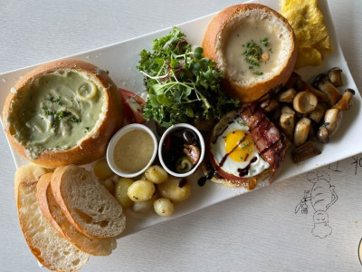 빵을요리하다는 고양시 동산동에 있는 브런치 카페다. 주차는 근처 골목에 할 수 있다. 매장 앞에 야외 테라스가 있어서 아이랑 편하게 방문하는 가족단위 손님도 많다. 카페 내부에는 화이트 테이블과 철제 의자를 깔끔하고 세련된 느낌으로 배치해 놓았다. 진열대에는 다양한 빵과 쿠키류가 진열되어 있고 수제 과일청과 초콜릿도 판매한다. 1인 브런치 및 2인 세트 메뉴가 준비돼 있는데 특히 이곳 빵들은 저온숙성, 자연발효 과정을 거친 건강한 빵이다. 카운터 뒤쪽 오픈 주방이라 안심하고 먹을 수 있고 브런치 메뉴를 시키면 아메리카노는 무료다.
