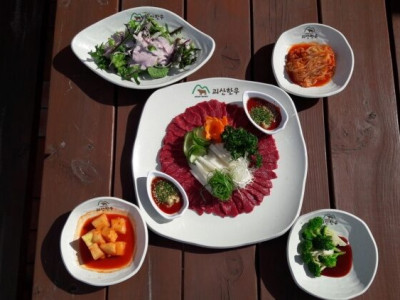 괴산한우타운은 충청북도 괴산군 칠성면 갈읍리에 있는 정육식당이다. 현대적인 외관과 깔끔한 분위기의 인테리어가 눈에 띈다. 내부에는 단체석이 마련되어 있어 모임에 적합하다. 대표 메뉴는 한우 전문가가 엄격한 선별 과정을 거쳐 손질한 각종 구이용 한우다. 이 밖에 한우 육회비빔밥, 육회 비빔냉면, 한우갈비탕, 한우불고기, 한우 육사시미 등도 맛볼 수 있다.