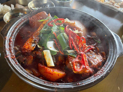 오전 8시 30분부터 오후 3시까지 운영하는 고등어 김치찜, 생선구이백반(고등어, 조기, 옥돔 등 3마리), 육개장 전문점. 사위가 직접 잡은 제주산 생선만 사용하기 때문에 국내산 싱싱한 생선을 푸짐하게 먹을 수 있는 장점이 있다. 계란 프라이는 따로 시킬 수 있지만 톳무침, 오이지무침, 깻잎절임, 콩자반, 파래부침개 등 소박하면서도 하나하나 정갈한 밑반찬들이 가슴 따뜻해지는 집밥같이 느껴진다. 제주공항 근처이다 보니 여행 다니면서 그리워지는 한식 밥상 먹기 좋은 곳이다.