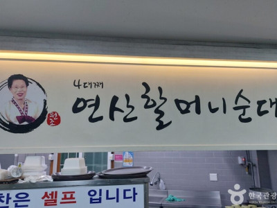 연산할머니순대(논산)는 논산시 연산시장 인근에 위치한 순대 전문점이다. 토종의 맛을 고집하며 100년 넘게 4대째 이어오는 역사 깊은 곳이다. 돼지 사골국물을 우려낸 육수를 국물로 이용하고 있으며 당면과 두부를 넣은 보통 순대와는 달리 순수한 돼지 피와 파만을 이용하여 손으로 직접 만든다. 선지를 넣은 순대와 다양한 부위의 내장을 뽀얀 국물에 말아내는 순대국밥이 이곳의 대표 메뉴이다. 인근에는 연산시장, 연산역 외에 백제군사박물관, 탑정저수지, 개태사 등이 있다.
