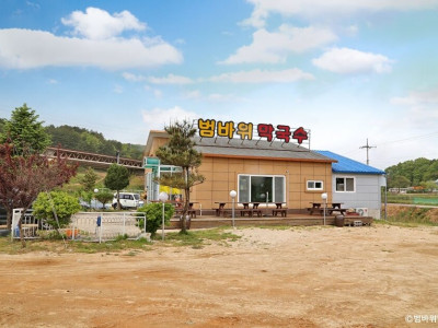 범바위막국수는 강원도 속초시에 있는 막국수 전문점이다. 척산 온천 근처에 있어 온천욕을 즐긴 후에 시원한 막국수를 먹으러 들를 수 있는 곳이다. 막국수는 주문받으면 바로 제면 해서 조리한 후 제공하고 있어 주문하고 난 후에는 변경이 어렵고 서빙까지 시간이 걸리는 편이다. 회 막국수에 올라가는 고명이 가자미회가 많은데 이 집은 대관령의 특산물인 명태회를 올려 주는 곳이다. 명태회가 막국수의 감칠맛을 더욱 높여 준다. 곁들임 메뉴로는 수육, 메밀찐만두, 찰수수부꾸미, 오징어순대가 있어 다양하게 즐길 수 있다.