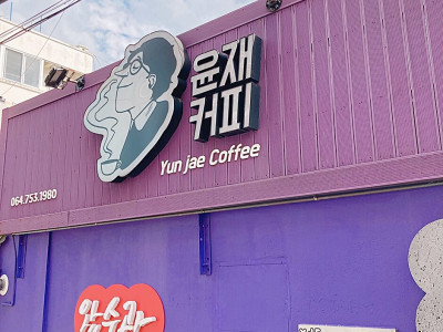 윤재커피는 제주시 동문시장 근처에 있다. 제주 원도심의 구옥을 개조하였고 아기자기한 소품과 함께 작은 정원이 있는 카페이다. 제주산 식재료를 이용해 식음료를 만들고 엄마표 기름떡의 경우 제주 로컬음식인 기름떡을 모티브로 제주산 쑥, 당근, 플레인 세 가지 맛에 전복 조림과 블루베리 잼, 애플망고 잼을 함께 제공한다. 이 밖에 아인슈페너, 흑임자 라테 등도 인기 메뉴이다. 주변 여행지로 제주 원도심, 제주목관아 등이 있다.
