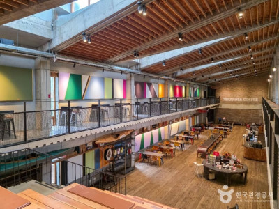 강원도 강릉시 구정면에 위치한 테라로사 커피공장 강릉본점은 단순한 카페를 넘어, 커피 생산의 전 과정을 시각적으로 체험할 수 있는 공장형 복합문화공간이다. 넓은 무료 주차 공간과 펫존 야외 테라스가 있어 반려견과 아이 동반 방문객에게도 적합하다. 빨간 벽돌 외관의 공장 건물 내부에는 로스팅 머신, 커피 박물관, 아트샵, 이탈리안 레스토랑, 베이커리 등 다양한 요소가 조화롭게 배치되어 있으며, 높은 천장과 콘크리트 바닥이 주는 공장 특유의 공간감을 느낄 수 있다. 이곳에서는 직접 로스팅한 스페셜티 원두를 맛볼 수 있으며, 다양한 티 종류도 판매한다. 주변에는 솔향수목원, 연곡해변 등 자연 명소가 인접해 있어 커피와 함께 여유로운 여행 코스를 즐기기 좋다.