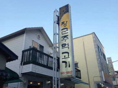 장군주먹고기는 숙성 과정을 통해 좋은 육질로 차별화된 고깃집이다. 두툼한 고기를 잘 구워 한 입 먹으면 입안에 담백한 육즙이 가득 퍼지고, 쫀득한 식감을 가진 껍데기는 콩가루를 찍어 먹으면 고소한 맛이 두 배가 된다. 고기와 함께 먹는 고기와 함께 먹는 쌈 채소는 상추와 깻잎, 배추, 치커리 등 종류가 다양해서 취향대로 골라 먹을 수 있다.