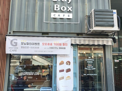 그레이박스는 서울 지하철 2호선 성수역 2번 출구 성수초등학교 인근에 있는 디저트 카페다. 매장에 별도의 주차장은 마련되어 있지 않다. 평일엔 아침 7시 전에 문을 열어 모닝커피를 찾는 직장인들도 많이 방문하는 곳이다. 외관을 회색빛 바탕에 옅은 하늘색으로 꾸며 모던한 느낌이 든다. 메뉴로는 아메리카노, 카페라테, 바닐라라테, 스윗라테, 더치커피, 더치라테 등이 있고 이외 다양한 음료와 수제청, 디저트류가 있다. 서울숲이 가까이에 있어 가볍게 산책할 수 있고, 성수동카페거리, 성수동구두테마공원, 뚝섬유원지 등이 있어 연계 관광을 할 수 있다.