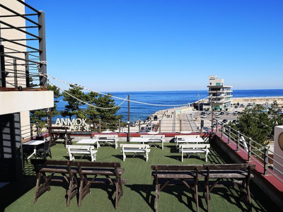 안목 바닷가 커피거리에 있는 오션뷰 미르마르 카페는 뷰 맛집으로 유명하다. 루프탑과 테라스에 인생 샷을 찍을 수 있는 포토존으로 꾸며져 있다. 독특하게 빈백이 놓인 테이블이 있어서 바다를 보면서 누워서 쉴 수 있어 인기가 많다. 탁 트인 안목 해안을 바라보면서 음료를 즐기기 편하다. 강릉 명물인 커피콩 빵을 비롯한 다양한 디저트도 준비되어 있다. 노키즈존으로 운영하고 있지만 보호자와 함께 입장할 수 있다.