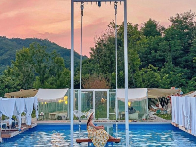 야외 수영장, 온수풀, 아이들을 위한 놀이시설이 구비되어 있는 카페&레스토랑이다. 글라스 룸, 캐노피 룸, 플로팅 룸, 방갈로, 썬 배드, 파라솔, 일반 테이블석 등 다양한 좌석이 준비되어 있다. 음료와 식사를 동시에 즐길 수 있어 음식 걱정 없이 아이들과 편하게 물놀이 시설을 이용할 수 있다. 성수기와 주말에는 이용객이 많으므로 미리 시설 예약을 하는 것이 좋다. 또한 금은모래강변 놀이터와 여주 곤충 박물관, 예크생물원, 여주프리미엄아울렛 등이 가까이 있어 당일 여행 코스로 이용할 수 있다.