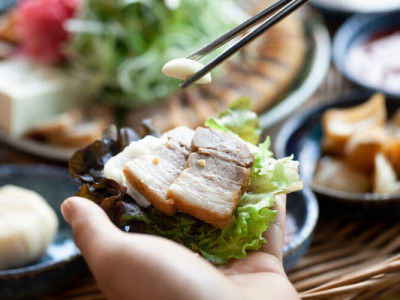 장군주먹고기는 숙성 과정을 통해 좋은 육질로 차별화된 고깃집이다. 두툼한 고기를 잘 구워 한 입 먹으면 입안에 담백한 육즙이 가득 퍼지고, 쫀득한 식감을 가진 껍데기는 콩가루를 찍어 먹으면 고소한 맛이 두 배가 된다. 고기와 함께 먹는 고기와 함께 먹는 쌈 채소는 상추와 깻잎, 배추, 치커리 등 종류가 다양해서 취향대로 골라 먹을 수 있다.