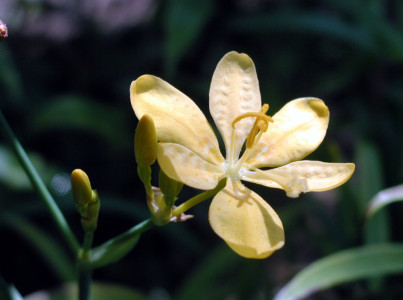 기본 정보 식물명 : 치넨시스범부채 '헬로 옐로' 학명 : Belamcanda chinensis 'Hello Yellow' 영문명 : Leopard flower; BlackberryBlackberry lily; Leopard lilly 과명 : 붓꽃과 (Iridaceae) 자원구분 : 재배품종 분류체계 : 피자식물문 > 단자엽식물강 > 백합목 > 붓꽃과 > 범부채속
