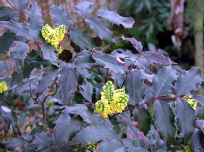 기본 정보 식물명 : 네팔뿔남천 학명 : Mahonia napaulensis DC. 과명 : 매자나무과 (Berberidaceae) 자원구분 : 재배품종 분류체계 : 피자식물문 > 쌍자엽식물강 > 미나리아재비목 > 매자나무과 > 뿔남천속